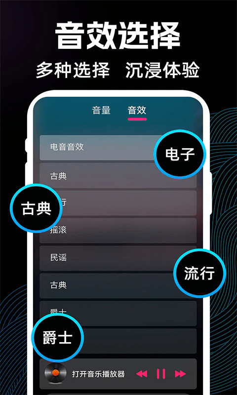 多种选择,沉浸体验,用户可以根据个人喜好选择不同的音效模式,享受更加丰富的听觉体验。