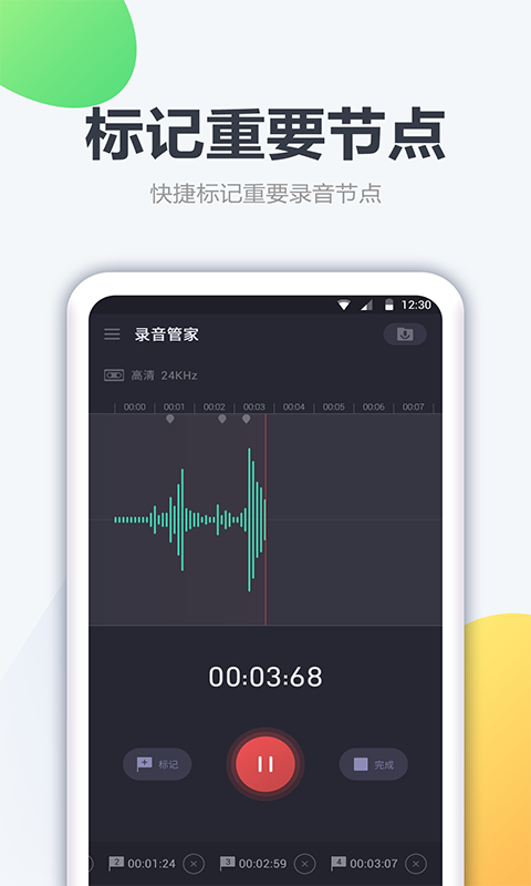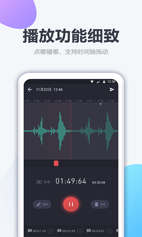 录音器是一款功能强大的手机应用,专为用户提供高效便捷的录音体验。无论您是在会议、课堂还是日常生活中,这款软件都能轻松捕捉到您所需的声音。其独特的标记功能让您能够快速定位重要录音节点,方便后续查找与回顾。录音质量可根据实际需求自由切换,确保在不同场景下都能获得最佳音效。此外,播放功能支持时间轴拖动,用户只需点击任意位置即可从该处开始播放,操作简单直观。无论是工作、学习还是娱乐,录音器都能成为您的得力助手。