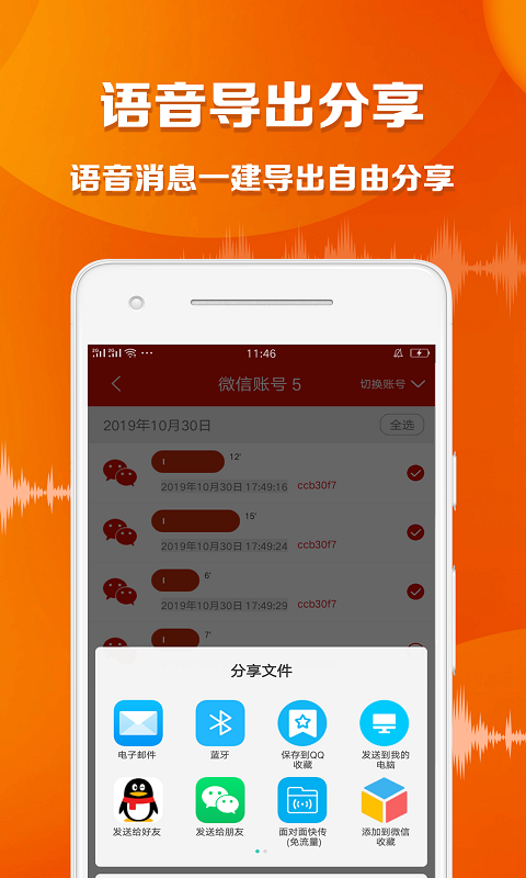 【语音分享】语音导出大师app提供多种分享方式,您可以一键将导出的语音文件分享给好友或同事,方便快捷。