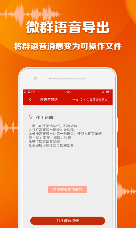【语音导出】语音导出大师app支持将社交应用内的语音消息转码为常见的音频格式文件,并导出到外部设备,方便您随时随地进行播放或编辑。