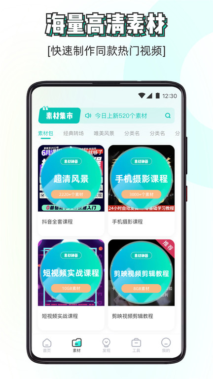 1.20w+海量素材:—键搜索全网素材,随时下载到手机本地,各种素材一应俱全,应有尽有。用户无需再为寻找素材而烦恼,所有资源触手可及。