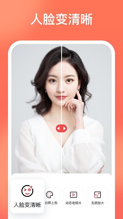 AI一键修复照片中模糊的人脸,使五官变清晰。无论是老照片还是低像素图片,都能通过智能修复技术,让人脸细节更加清晰可见。