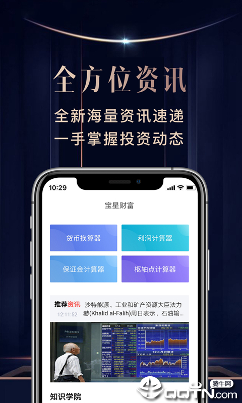 1、实时:实时更新国际新闻以及财经讯息!宝星财富的实时更新功能确保用户不会错过任何重要的市场动态,无论是突发新闻还是政策变化,都能第一时间获取。2、7*24行情资讯:追踪全球金融动态,让机会一览无余!通过全天候的行情监控,用户可以随时掌握市场脉搏,抓住每一个投资机会。3、圈子互动解答:问题实时解答,一语道破用户行情疑惑!宝星财富的圈子互动功能不仅提供实时解答,还能让用户与其他投资者分享经验,共同成长。4、换算计算工具:轻松帮助您一键解决常用计算换算难题!无论是汇率转换还是投资回报计算,宝星财富的计算工具都能快速准确地为您提供答案。