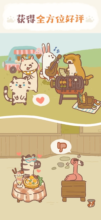 1、Q萌的卡通风格画面独具匠心,每个猫咪角色都拥有生动的表情和动作,配合温馨的BGM营造出轻松愉悦的游戏氛围;