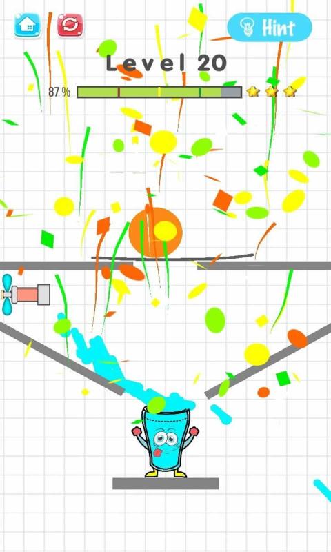 2、每个关卡都设计有独特的解谜机制,玩家需要开动脑筋寻找最佳解决方案。有时需要利用墙壁的反弹,有时需要计算多个水杯的摆放位置,有时还要考虑水流速度的变化。游戏鼓励玩家尝试不同的解法,同一个关卡往往有多种通关方式,充分激发玩家的创造力和想象力。