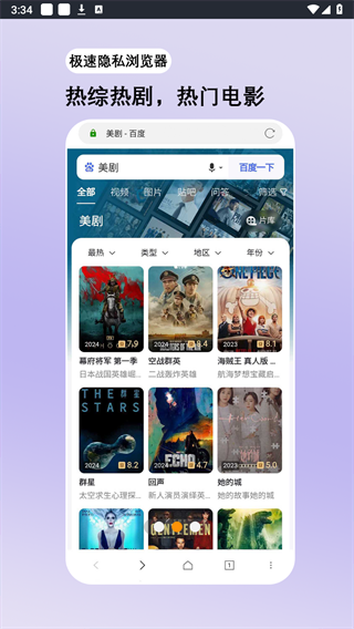 小火狐极速私密app是一款集高效浏览与隐私保护于一体的创新软件。它不仅提供闪电般的网页加载速度,还能智能节省流量,为用户带来流畅的上网体验。软件内置海量优质影视资源,涵盖热门综艺、热播电视剧和院线大片,让您随时随地享受精彩内容。其独特的隐私保护机制确保您的浏览记录、下载文件和个人数据安全无忧,真正做到"快人一步,安全无忧"的移动上网新体验。