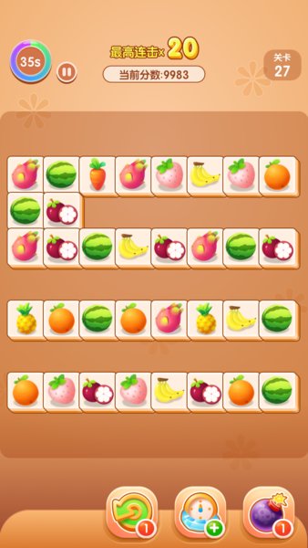 这款益智耐玩的连连看游戏不仅能帮助玩家打发闲暇时光,更能有效锻炼观察力和手眼协调能力。游戏采用渐进式难度设计,从简单到复杂逐步提升挑战性,让玩家在娱乐中不断提升技能。完成每日任务和特殊挑战可获得丰厚红包奖励,操作界面简洁直观,新手也能快速上手。游戏内置多种强力道具,如提示卡、重排道具等,在关键时刻助你突破难关。随着游戏进程,还能解锁隐藏关卡和特殊成就,带给玩家持续的新鲜感和成就感。精心设计的关卡布局和可爱的水果图案,让消除过程充满视觉享受。