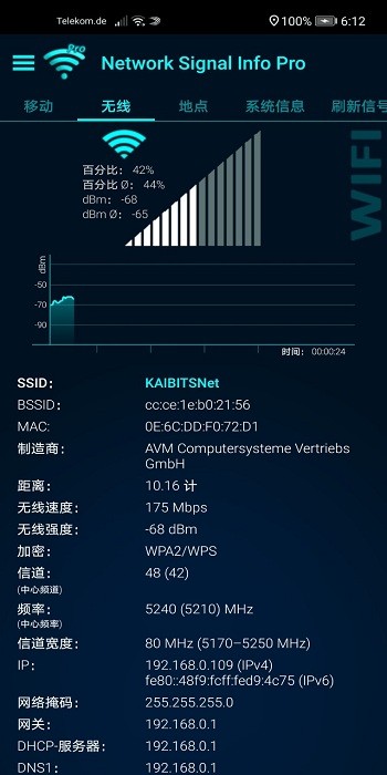 ——可帮助用户可以更轻松的查看当前网络信号的强度,便于选择性连接;采用专业级的信号强度计量算法,精确到dBm单位,配合易懂的图形化显示,让技术参数变得通俗易懂。