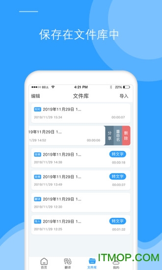 - 提供文件库功能,可保存录音音频和识别后的文本内容,支持文档分享,便于用户随时查阅和管理转换记录。