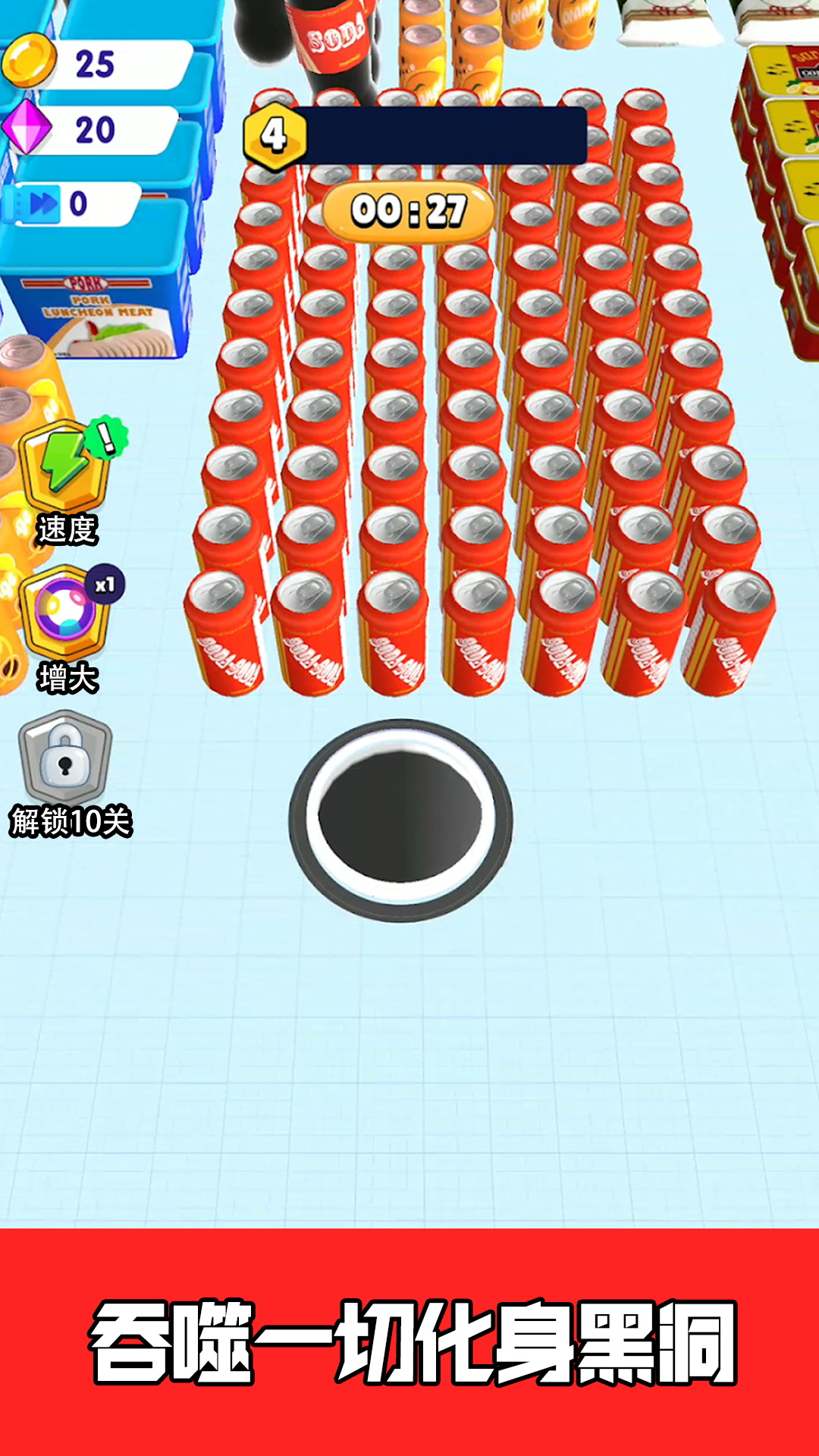 2、使用你的黑洞中的各种美味物品。随着吞噬量的增加,你的黑洞会不断壮大。注意观察食物的大小,先从小型食物开始吞噬,等黑洞变大后再挑战大型食物。