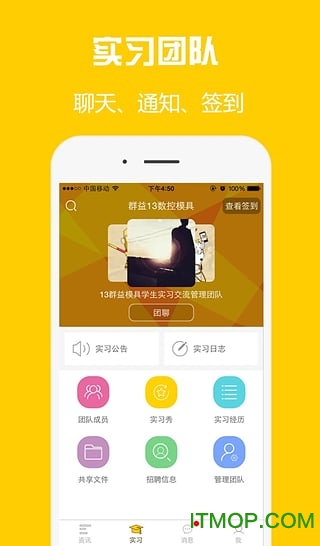 系统支持创建和管理实习团队,团队成员可以通过群聊功能保持沟通,教师可以一键发布通知公告。团队管理界面清晰展示成员签到情况、任务进度等关键信息,方便教师掌握整体实习状态,及时发现和解决问题。
