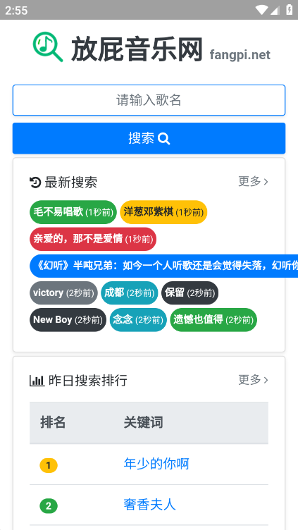 放屁音乐APP是一款功能强大的免费音乐下载软件,汇聚了全网热门付费音乐资源。无论是最新的流行歌曲,还是经典怀旧老歌,都能在这里轻松找到。用户可以通过搜索歌手名或歌曲名快速获取目标音乐,支持在线播放和高品质无损音质下载。软件界面简洁易用,操作流畅,让音乐爱好者享受极致的听歌体验。海量曲库持续更新,满足不同用户的音乐品味,是您不可或缺的手机音乐伴侣。