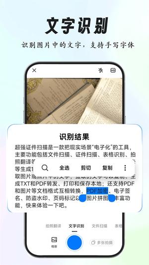超强证件扫描app是一款功能强大的手机扫描软件,专为用户提供高效便捷的扫描服务。无论是证件、文件还是书籍,都能通过智能识别技术快速完成扫描,并精准提取所需内容。软件支持多种文件格式转换和编辑功能,满足办公、学习、生活等多种场景需求。内置翻译工具还能实现多语言互译,让跨国交流更加轻松。操作简单,界面友好,是您日常工作和生活中的得力助手,快来下载体验吧!