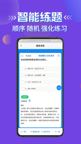 通过错题重做功能,系统会自动记录学员的错题情况,形成个性化的错题本,帮助学员有针对性地查漏补缺。智能推荐功能会根据学员的学习进度和答题情况,自动推送最适合的练习内容,实现精准学习。模拟练习模块提供真实考试环境,让学员提前适应考试节奏,有效缓解考试焦虑。交卷功能设计人性化,在答题卡最后设有明显的交卷按钮,操作简单便捷。软件还整合了快速练习、考点练习等多种学习模式,满足不同阶段的学习需求,全方位提升学员的应试能力。