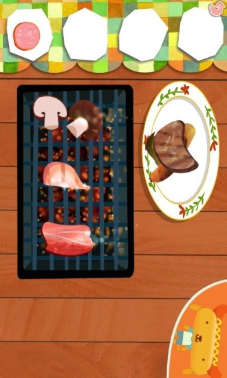 2、烤肉体验:真实模拟烤肉过程,需要掌握火候和时间。烤制过程中会有提示音效,教导孩子注意食品安全。烤焦的食物会变黑冒烟,生动形象地传达烹饪技巧。