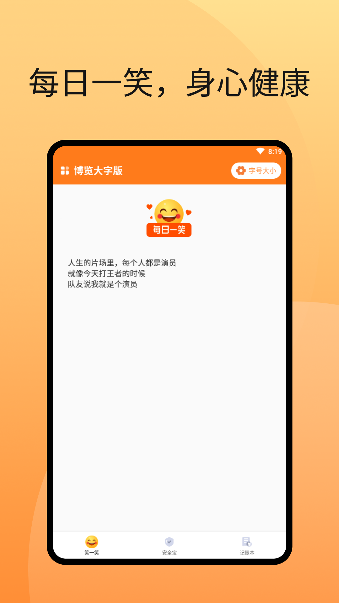 博览大字版是一款贴心设计的资讯阅读应用,特别采用大号字体和清晰排版,有效缓解中老年人阅读时的视觉疲劳。应用界面简洁大方,功能分区明确,让用户能够快速找到所需内容。除了基础的资讯浏览功能外,还特别加入了语音朗读功能,让视力不佳的用户也能轻松获取信息。每日还会推送精选内容,包括健康养生、生活小窍门等实用信息,让用户的每一天都充满新鲜感。真正做到了让阅读变得更简单、更舒适。