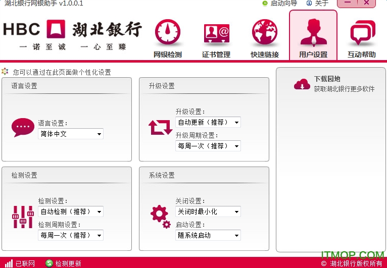 本网银助手是湖北银行为网银系统订制的一款辅助工具,它不仅提供基础的环境检测功能,还具备智能诊断能力。当检测到系统异常时,会自动给出详细的解决方案。软件内置知识库包含常见问题解答,用户可通过搜索快速找到解决方法。同时支持远程协助功能,遇到复杂问题时可直接联系客服人员获得专业指导。