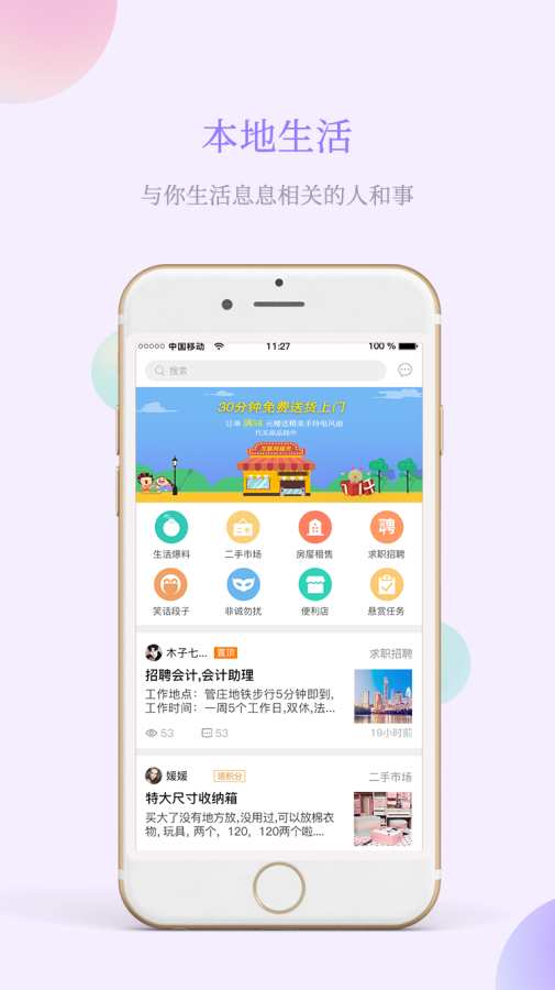 燕郊生活安卓版是一款专为燕郊居民打造的本地化生活服务平台,集资讯、社交、便民服务于一体。在这里,您可以随时获取燕郊最新动态,与邻居畅聊社区趣事,还能快速找到附近的帮手解决生活难题。无论是寻找二手好物、发布悬赏任务,还是查询周边服务,都能一键搞定。更有30分钟送货上门的便利店服务,让您的生活更便捷。这款应用致力于构建温暖的邻里关系网,让燕郊人的日常生活更简单、更有趣。