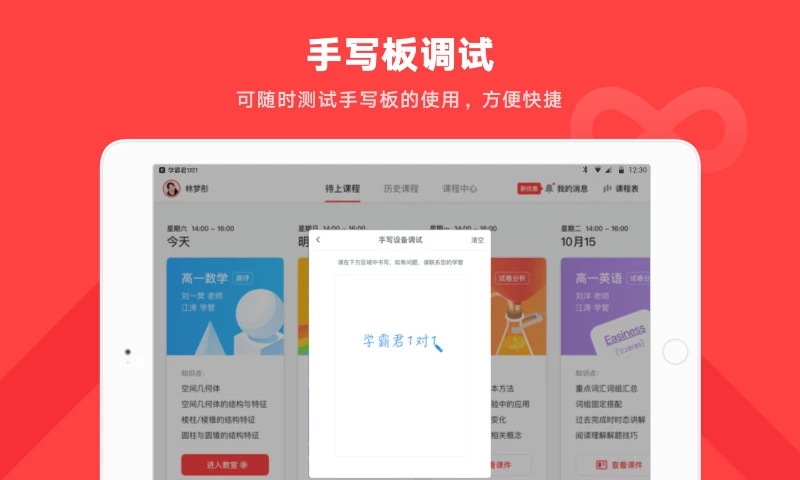 "学霸君1对1"学生端是学霸君旗下一款在线1对1辅导产品的安卓平板应用。采用切片式课程和关卡式教学设计,精准学生知识薄弱点,为每个学生制定个性化的学习方案,实现学习路径可规划。运用智能本和智能笔的创新技术,独创远程教学同步批改的全新学习体验,以互动直播的形式实现百分百"面对面"授课,进而大幅度提升用户的学习效率。