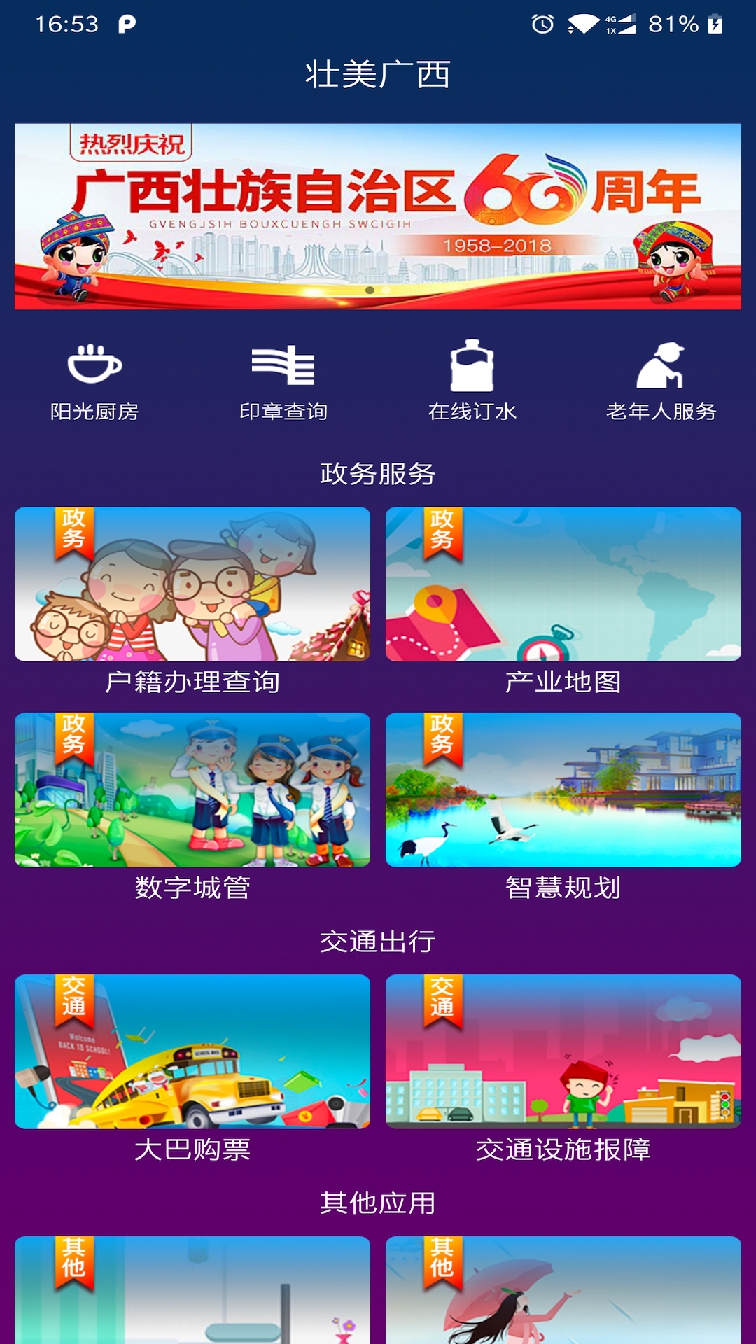 交通出行:实时更新全区高速公路路况、城市公交到站信息,支持南宁地铁、柳州BRT等公共交通的扫码乘车功能。