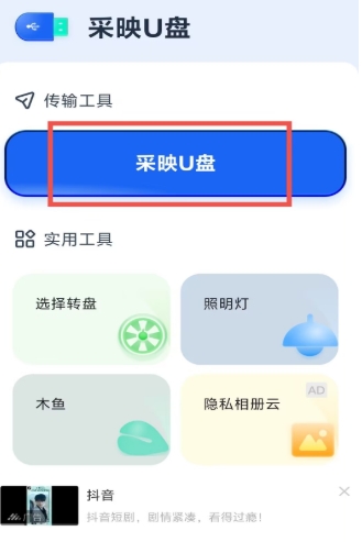 1、首先在手机上下载并安装采映U盘应用,打开软件后点击主界面上的"采映U盘"功能选项