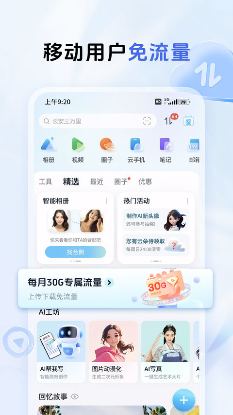 中国移动云盘手机版功能: