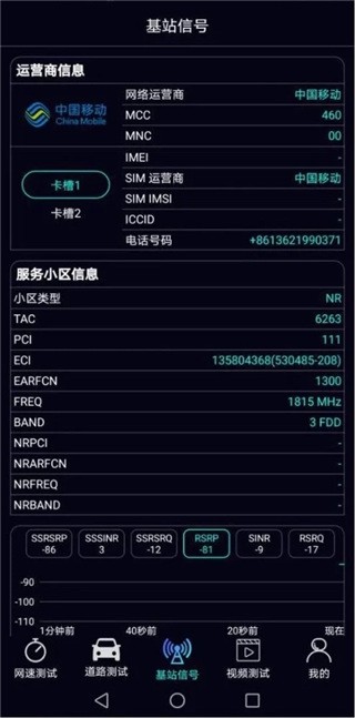 4、泰尔网测基站信号展示2,可以查看基站的信号强度和质量,帮助用户判断网络连接状况。