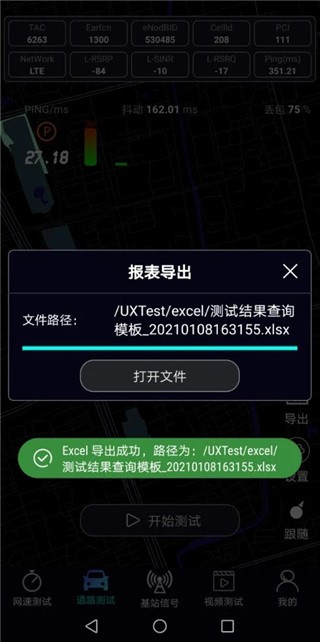 6、泰尔网测道路测试报表导出,支持将测试数据导出为多种格式,方便后续分析。