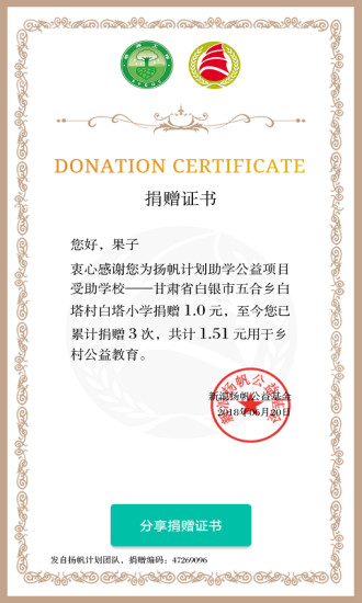 现在用户可以通过扫描学校专属二维码快速访问捐赠页面,简化操作流程。这项功能特别适合线下公益活动时使用,让捐赠更加便捷高效。