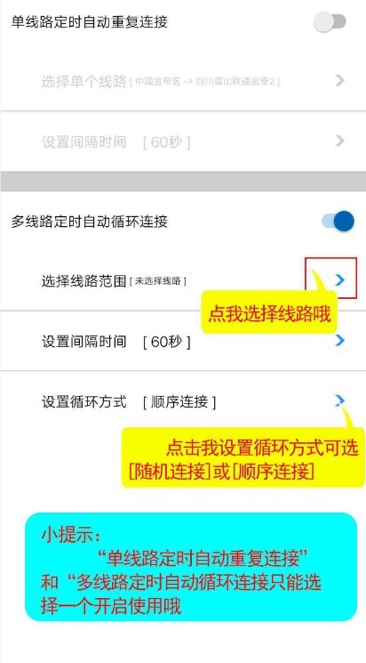 IP海提供了两种定时自动连接线路的方式,方便用户根据需求灵活设置。第一种是单线路定时自动重复连接,用户只需进入设置界面选择单个线路并设置间隔时间,返回主页点击连接即可。第二种是多线路定时自动循环连接,用户可以选择线路范围、间隔时长和循环方式,还能批量添加或删除线路,甚至通过省市县关键词搜索组合线路,操作更加智能化。无论是单线路还是多线路模式,IP海都能帮助用户实现自动化网络切换,提升使用效率。