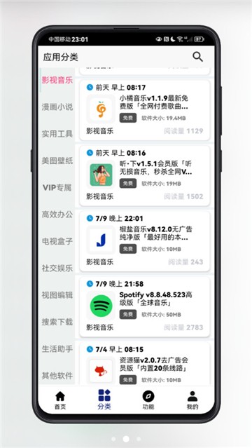 4、"分类"板块将所有资源按照类型、用途等维度进行详细分类,包括办公工具、影音娱乐、学习教育等数十个类别,方便用户按需查找。