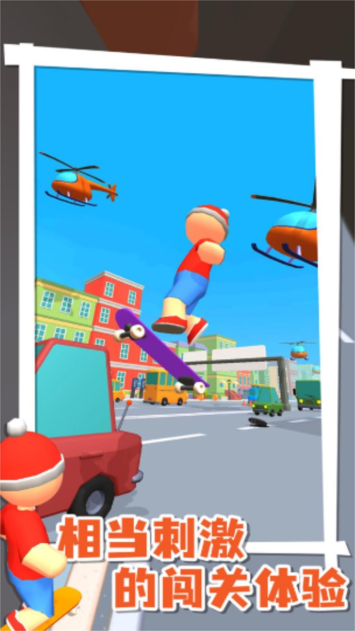 2、游戏采用高品质的3D渲染技术,画面表现力出众,色彩鲜明且细节丰富。操作手感顺滑流畅,物理引擎真实自然,为玩家带来极具观赏性的视觉盛宴。无论是滑板动作还是场景转换都呈现出电影级的视觉效果。