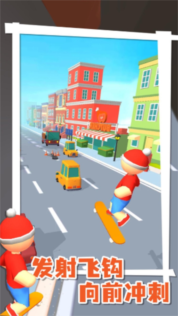 游戏支持多人在线竞技模式,玩家可以与来自全球的对手同场较量。通过展现高超的滑板技巧和精准的飞钩操作,争夺排行榜的冠军宝座。实时对战系统让比赛过程更加紧张刺激,胜负往往只在毫厘之间。