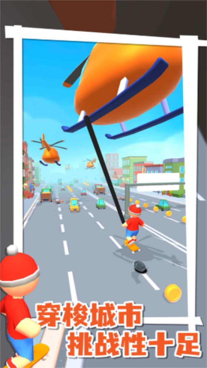 《飞钩滑板》将跑酷、闯关和动作元素完美融合,打造出一款独具特色的休闲竞技游戏。玩家需要操控滑板少年在城市中疾驰,通过精准投掷飞钩来钩住移动的车辆或飞行器,实现惊险刺激的空中飞跃。游戏关卡设计巧妙,障碍设置合理,既考验操作技巧又富有策略性。丰富的道具系统和角色技能为游戏增添了更多变数,让每次闯关都充满新鲜感。整体游戏节奏明快,画面精美,是一款兼具娱乐性和挑战性的精品手游。