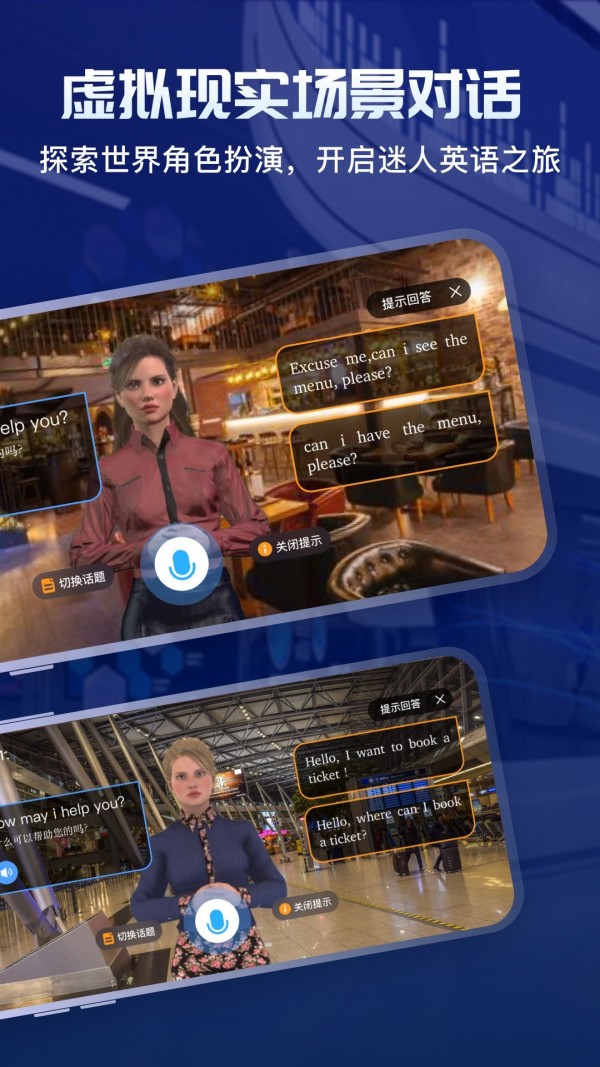 2、软件采用前沿的VR技术,创造出完全真实的第二语言视觉环境。在这种沉浸式体验中,语言学习不再是枯燥的记忆,而是自然而然地发生在场景互动和话题探索中。