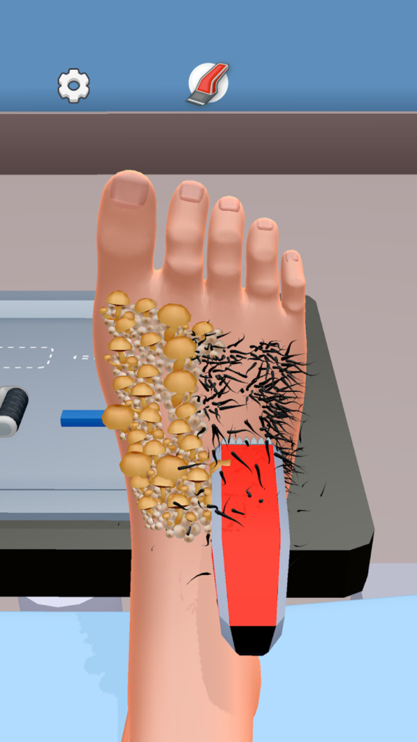 游戏开创性地将修脚这一生活服务转化为趣味玩法,通过夸张的表现手法让看似平常的足部护理变得妙趣横生。玩家会遇到各种奇葩的"问题脚":长满蘑菇的脚、结冰的脚、甚至外星人脚,每个案例都需要独特的处理方式。游戏特别注重操作细节的还原,从去死皮的力度控制到指甲修剪的角度把握,都要求玩家精准操作。舒缓的背景音乐配合轻松的游戏节奏,让玩家在娱乐的同时也能获得放松,特别适合工作学习之余用来缓解压力。