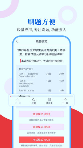大学生英语竞赛圣题库是一款专为英语学习者打造的高效备考工具,致力于帮助用户轻松应对各类英语竞赛考试。软件整合了历年竞赛真题、模拟试题以及丰富的学习资源,包括电子教材、视频课程、在线直播和考点手册等。通过智能化的学习功能,如错题重做、真题解析、语音朗读和知识点串联,用户可以系统性地掌握考试重点,显著提升学习效率。无论是考前冲刺还是日常练习,这款软件都能满足不同层次学习者的需求,让备考过程更加轻松高效。感兴趣的用户可以前往闪电下载网获取最新版本。