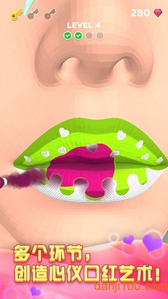 OMG涂它游戏是一款专为时尚爱好者打造的3D唇彩设计手游。在这里,玩家将化身专业化妆师,使用丰富多样的口红、唇釉、亮片等美妆工具,在虚拟嘴唇上尽情挥洒创意。游戏提供海量关卡挑战和数百种色彩选择,从甜美粉嫩到性感暗黑,满足你对唇妆的所有想象。通过精心设计的社交分享系统,你的作品还能获得全球玩家的点赞与关注。无论是想放松心情还是展现艺术天赋,这款游戏都能带来独特的美妆体验。现在就加入这场色彩盛宴,打造属于你的唇妆潮流吧!