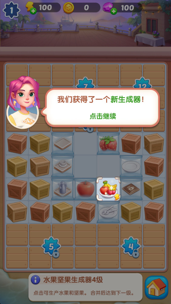 游戏开始时,跟随新手引导熟悉基本操作,首先前往备餐区准备食材和工具。点击背包中的果叉等基础道具,将其放置在备餐区的指定位置。接着,通过合并相同的物品来合成新道具,比如将两个苹果合成苹果酱,或者将两块面包合成三明治。随着合成次数的增加,你可以解锁更高级的物品,比如精致的甜点或豪华的主菜。此外,合并木箱旁边的物品可以查看隐藏的食材或特殊道具。当某些物品升级到特定等级时,还能解锁全新的菜品或装饰物。每个生成器都有固定的产出范围,点击它们可以获取基础材料。最后,通过不断合成新物品来完成订单任务,点击订单上的“!”图标可以查看详细的合成路径,帮助你更高效地经营餐厅。