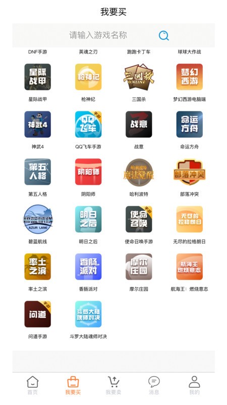 2、在首页底部导航栏中,点击【我要买】按钮进入购买专区。这里汇集了各类热门游戏的交易信息,用户可以根据需求筛选查看。