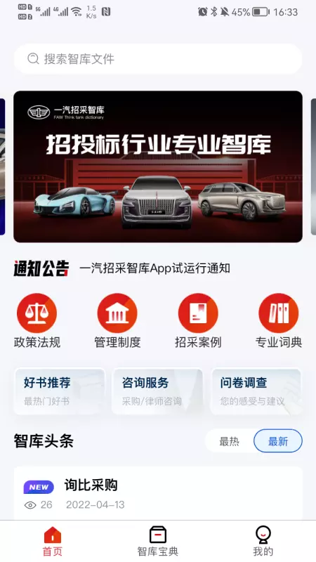 一汽招采智库是一款专为招标采购行业打造的移动端知识服务平台,致力于成为从业人员的随身智囊团。该软件整合了招投标领域的专业知识体系,包含大量真实案例、最新法规政策及实务操作指南,通过智能化的学习系统帮助用户快速提升专业能力。无论是刚入行的新手还是资深从业者,都能在这里找到系统化的学习路径。平台采用模块化知识架构,支持碎片化学习模式,让用户随时随地掌握招投标全流程要点,同时提供权威的政策解读和风险预警功能,确保用户在复杂项目环境中始终把握主动权。