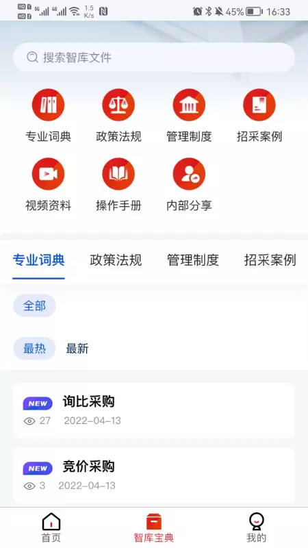 2、还涵盖了专业词典、政策法规以及管理制度和招采案例等等多个内容,可以一键查询非常的方便快捷;专业术语库包含中英对照解释,法规文件支持版本对比和修订标注,典型案例附带专家点评和延伸思考。