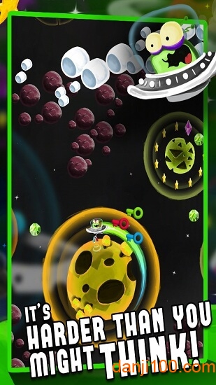 3.单触式玩法将让您可以立即开始游戏!这游戏很容易控制,但很难精通!不要让我们的外星人的可爱的外表骗你!简单的操作背后隐藏着深度的游戏机制,高手玩家可以研究出各种进阶技巧,如引力弹射、轨道优化等,将游戏体验提升到全新层次。