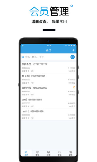 商卡通会员管理手机版是一款专为商家打造的智能会员管理系统,集会员管理、短信营销、多功能收银、交易记账等功能于一体。该软件采用简洁直观的界面设计,操作简单易上手,能够帮助商家高效管理会员信息,实现精准营销和便捷收银。同时支持多终端数据同步,确保信息永不丢失。无论是小型店铺还是连锁企业,都能通过商卡通提升管理效率,优化客户服务体验。