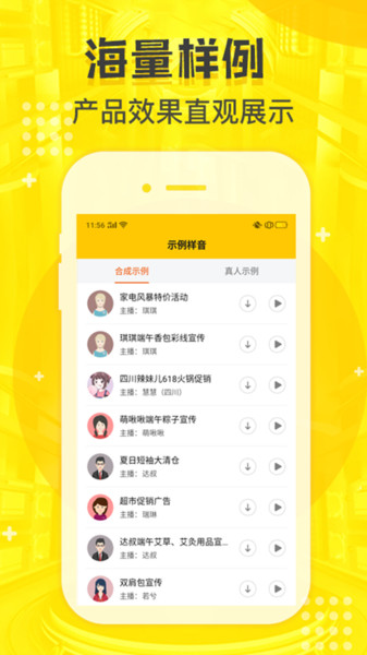 5、海量样例展示:提供各类成品示例,帮助用户快速了解不同音色的实际应用效果。
