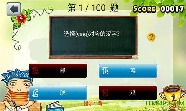 3、应用采用科学的记忆曲线算法,根据每课生字设计个性化测试题,包括听音辨字、看图识字、填空组词等多种题型,通过趣味互动帮助孩子牢固掌握每个生字。