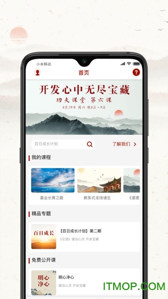 1、首页优化显示阳明心学课程二期,提升课程曝光度;