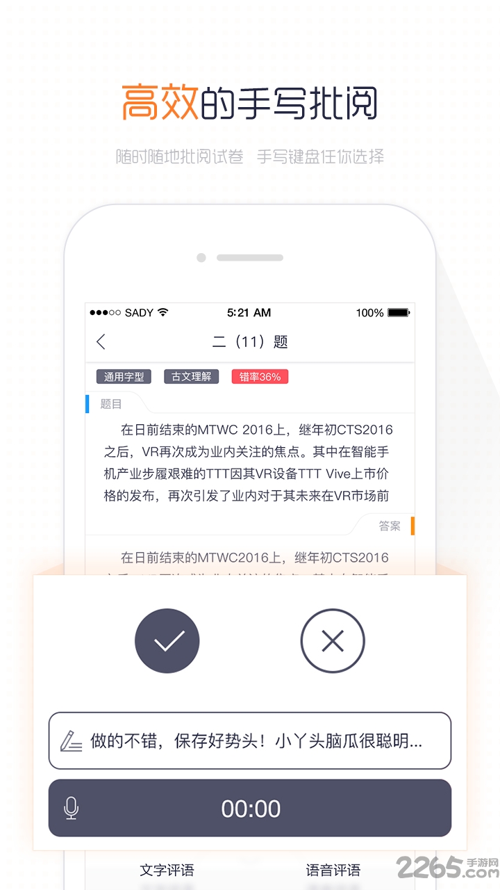 阅卷易免费安卓版是一款专为教师打造的智能教学辅助工具,旨在通过数字化手段革新传统教学模式。这款软件集试卷批改、成绩分析、作业管理于一体,采用先进的AI识别技术,能够自动批阅客观题并生成详细错题报告,让教师从繁重的机械性工作中解放出来。系统支持多维度数据可视化分析,可直观呈现班级整体学习趋势和个体知识薄弱点,教师还能通过内置通讯模块实现家校无缝对接。其简洁的Material Design界面设计确保了操作流畅性,无论是年轻教师还是年长教育工作者都能快速上手,真正实现减负增效的教学目标。