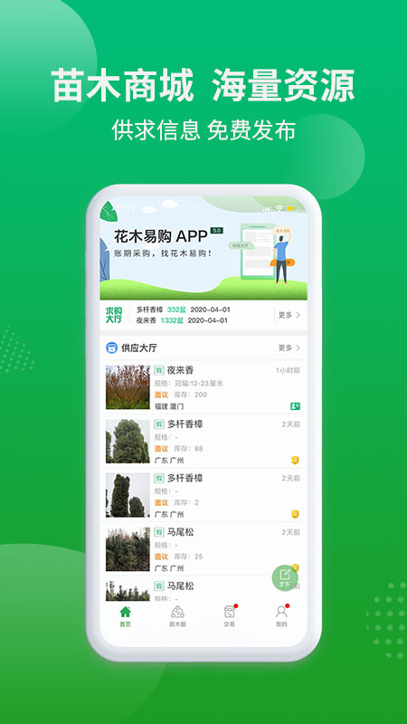 花木易购2023最新版是一款专为苗木行业打造的移动交易平台,致力于为用户提供高效便捷的苗木采购体验。通过该应用,用户可以实时查看各类苗木的详细信息,并在线完成购买流程,大幅提升交易效率。平台整合了全国范围内的苗木供需资源,不仅提供丰富的市场参考数据,还配套了苗木质量检验、智能调度、供应链金融支持以及专业物流配送等全方位服务,真正实现了苗木交易的一站式解决方案,帮助用户轻松完成从选苗到交付的全流程。