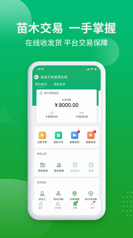 4、高效的交易流程:优化后的交易系统可以实现快速下单、即时确认、实时跟踪等功能,大幅缩短传统苗木交易的周期,为用户节省宝贵时间。